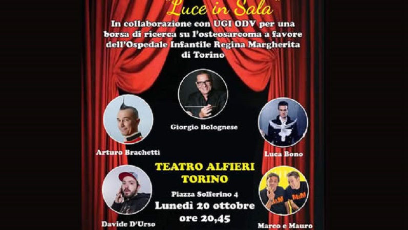 L’intero ricavato della serata sarà destinato all’istituzione di una borsa di ricerca presso l’Ospedale Regina Margherita, finalizzata allo studio dell’osteosarcoma, un tumore maligno che colpisce soprattutto i bambini. Un obiettivo concreto per trasformare lo spettacolo in un gesto di speranza e sostegno alla ricerca scientifica.