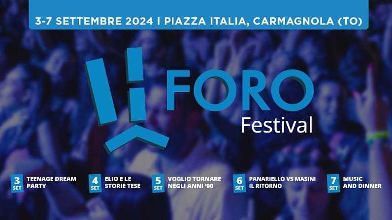 Dal 3 al 7 settembre si terrà la 6^ edizione di FORO FESTIVAL a Carmagnola (Torino). Gli eventi del festival si terranno in Piazza Italia nell’ambito della storica Fiera Nazionale del Peperone.