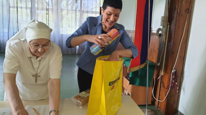 La presidente del Consiglio Comunale, Maria Grazia Grippo, si è recata in visita al Centro ospitato nella storica sede del circolo culturale Sant’Efisio. Un’occasione per vedere all’opera i volontari e per partecipare, in prima persona, alla preparazione di alcune borse con pasta, salsa di pomodoro, biscotti e prodotti per l’igiene e per ascoltare storie toccanti. Come quella della signora Rosa (nome di fantasia) che, pur in condizioni di disagio economico, ospita una ragazza sottoposta a cure oncologiche, recentemente sfrattata. Per la signora Rosa, ovviamente, la dotazione personale è stata aumentata.