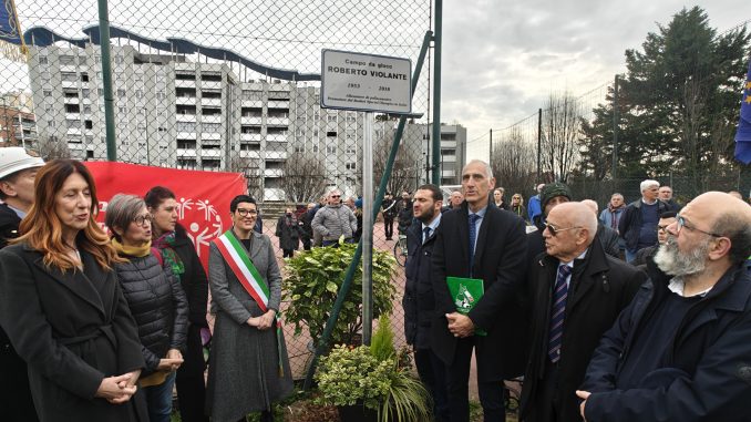 Nei giorni scorsi si è svolta la cerimonia di intitolazione a Roberto Violante del campo sportivo situato all’interno del giardino “Francesco Salerno” in via Isonzo, di fronte ai numeri civici 125-129, nel Borgo San Paolo (Circoscrizione 3). La cerimonia ha visto la partecipazione della presidente del Consiglio comunale, Maria Grazia Grippo, dell’assessore alla Toponomastica, Francesco Tresso, della presidente della Circoscrizione 3, Francesca Troise, della figlia Elena Violante, dell’amico Nino Ferraro e di Alessandro Palazzotti, fondatore e attuale vicepresidente di Special Olympics. Erano inoltre presenti numerosi atleti del Gruppo sportivo Pandha, fondato dallo stesso Violante nel 1989.