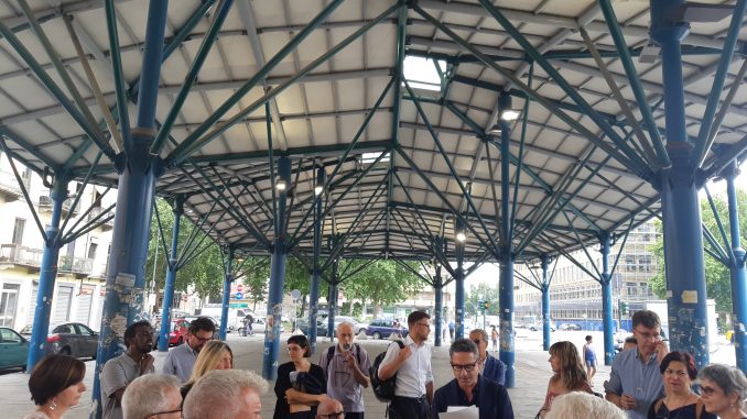 Come riqualificare Piazza Crispi? Guardare alle ex Officine Grandi Motori che si affacciano dalla parte opposta della piazza dove i ponteggi di Esselunga stanno salendo e le bonifiche stanno proseguendo potrebbe essere la visuale adatta. Quattro Commissioni comunali coordinate da Toni Ledda (Pd) – Urbanistica e Lavoro del Consiglio comunale con le omologhe circoscrizionali e gli assessori Mazzoleni e Chiavarino – si sono recate in sopralluogo ritrovandosi sotto il simbolo delle difficoltà della piazza all’entrata di Barriera di Milano arrivando da Aurora: la tettoia. Cosa fare della struttura costruita a inizio secolo è un rebus ma dal sopralluogo è emersa un’intenzione della Giunta: “Ci stiamo accingendo a predisporre l’atto di restituzione del manufatto al Patrimonio” ha spiegato l’assessore al Commercio Paolo Chiavarino ricordando la fase sperimentale del mercato pomeridiano iniziata nel 2016 e gli esiti infausti se pensiamo che oggi sono trentatré le presenze annuali degli operatori nelle due giornate di apertura settimanale; tramonta la destinazione commerciale della tettoia e da qui bisognerà ripartire. Si diceva in apertura delle ex Ogm; l’assessore all’Urbanistica Paolo Mazzoleni accarezza l’idea di un fondo destinato alla progettazione a lungo termine per alcune specifiche aree della città formato dagli oneri di urbanizzazione: “non sappiamo come usare gli oneri nell’immediato e disporre di una dotazione finanziaria per il futuro è un’idea già applicata dalla Regione Emilia Romagna ” ha spiegato. La tettoia ha finito per ospitare un dibattito tra consiglieri che ha prospettato diverse ipotesi partendo da un comune riconoscimento di individuare soluzioni per le difficoltà nelle quali versa il tessuto socioeconomico intorno a piazza Crispi; nelle prossime settimane una proposta di mozione del consigliere Giuseppe Catizone (Lega) cofirmata da Toni Ledda (Pd) sarà discussa e messa ai voti in Consiglio comunale per invitare la giunta a valutare la progettualità di riqualificazione dell’area e a finanziarla con parte delle risorse derivanti dagli oneri di urbanizzazione incassati dalla trasformazione dell’area ex Ogm o da altre trasformazioni urbane.