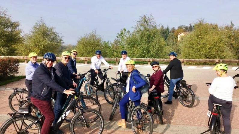 In particolare la delegazione ha potuto sperimentare di persona “Bar to Bar“ (da Barolo a Barbaresco), un percorso ciclo-escursionistico che permette di vivere le colline Unesco in sella ad una bicicletta. Un saliscendi tra i vigneti e tra i borghi più belli d’Italia (Neive e Monforte d’Alba) che permette di godersi i panorami sui crinali delle colline fino ad attraversare boschi e tartufaie nei fondovalle. Sette tappe per un totale di 137 chilometri, che toccano 21 paesi, da godersi in e-bike.