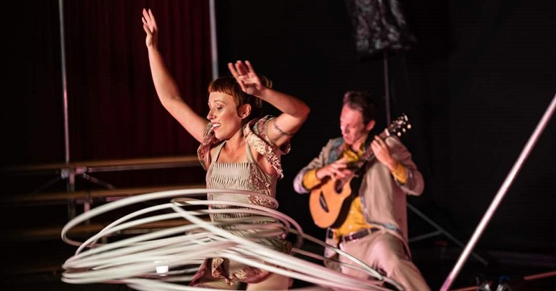 É questa la condizione che sembrano vivere i clown del DuoLinda (composto da Mario Levis e Silvia Martini) che con le loro inquietudini e attraverso originali composizioni musicali cercano di destreggiarsi tra lanci di coltelli, giocoleria, verticali a due metri d’ altezza, restando coinvolti in una sinfonia di imprevisti e in una danza di eccentriche follie sperando alla fine di tutto di amarsi senza sapere.