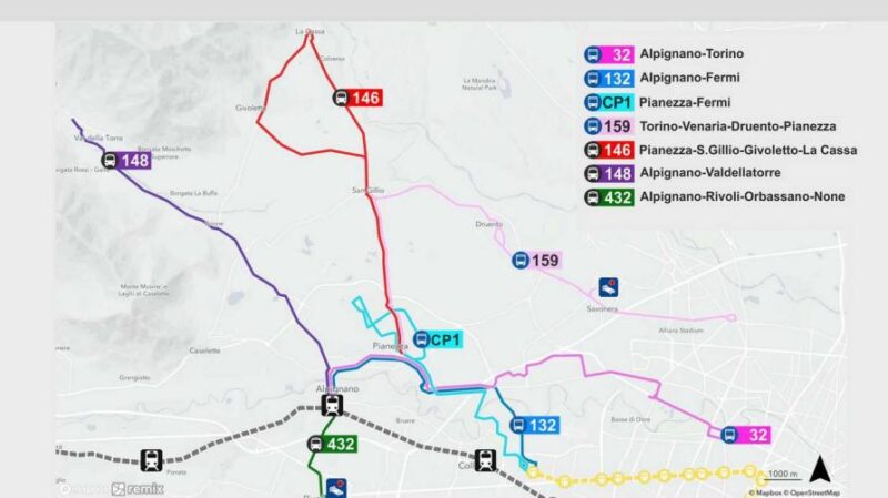 • NUOVA LINEA 132 Alpignano-Fermi: si alterna con la linea 32 sulla tratta da Alpignano a Collegno Portalupi, poi prosegue per la stazione Fermi della Metro lungo la variante